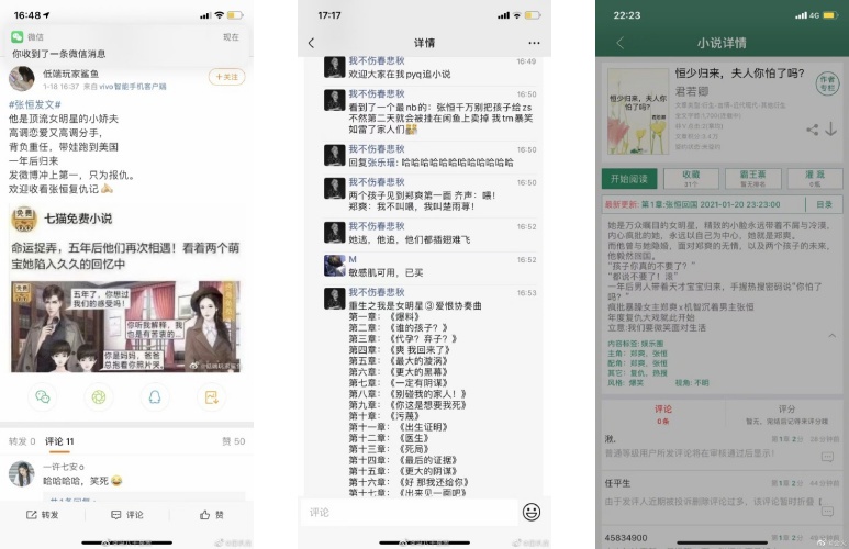 甚至还有网友将他们的故事写上中国著名小说阅读网站“晋江”,或是罗列出每一章的章节名,吃瓜之余看到这些,真的让人哭笑不得。