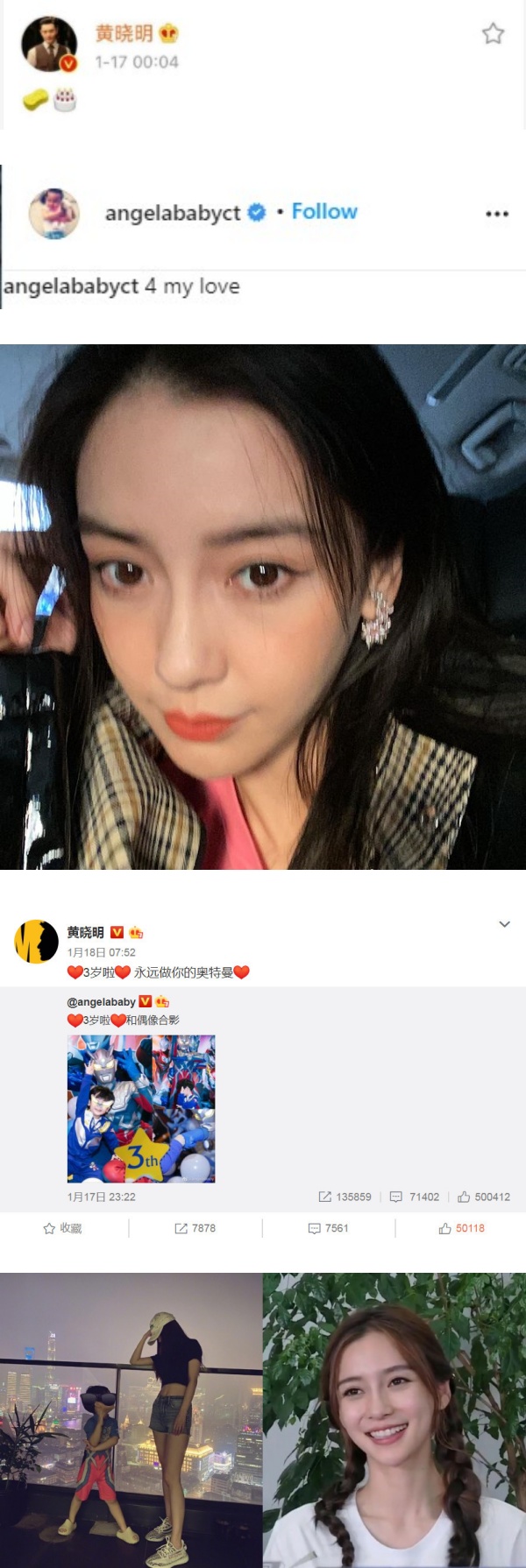 踏入17日零点,黄晓明在微博上发了一个海绵和一个蛋糕的emoji帖文,隔空给儿子送上生日祝福。正当大家都在好奇,Angelababy怎么迟迟没有做出任何举动时,17日午间她在Instagram上贴出一张自拍照配文,“4 my love”;网友猜测,Angelababy盛装打扮是为出席儿子的生日派对。
