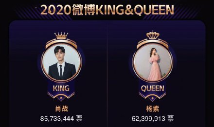 恭喜!杨紫、肖战继2019年后,再次获得2020微博KING和QUEEN奖项!