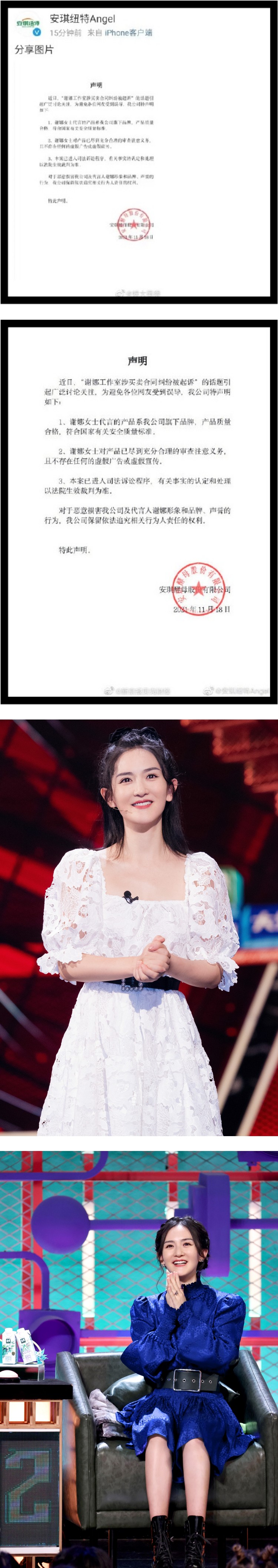 虽然谢娜工作室截至目前都没有任何回应,但她所代言的品牌随后发声明回应,强调产品安全没问题,也没有虚假宣传,并声援谢娜已尽到审查义务,目前案件已进入司法诉讼程序,“有关事实的认定和处理以法院生效裁判为准。”