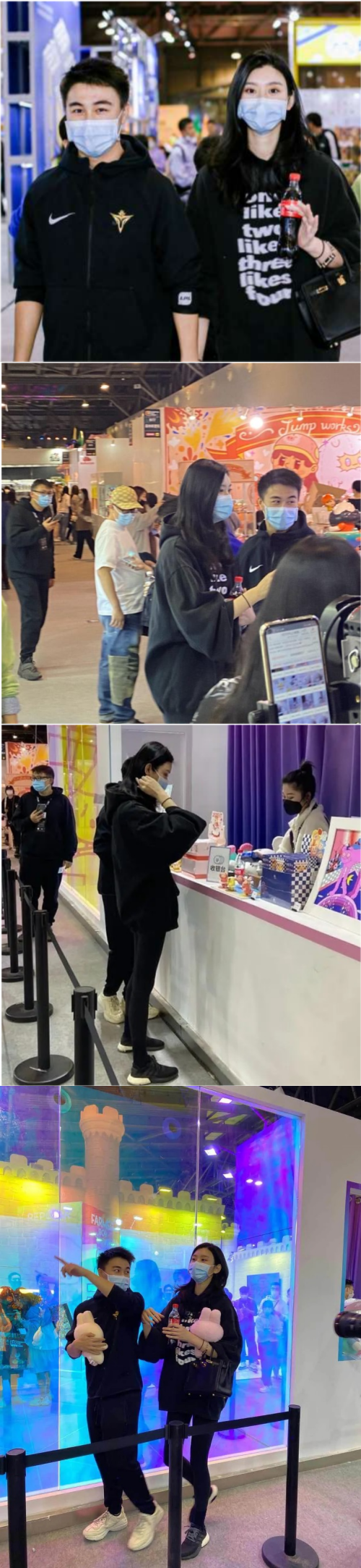 何猷君、奚梦瑶更童心未泯地在展览上买了两个兔子玩偶,边抱着兔子玩偶边聊天,童趣又甜蜜,大撒狗粮。