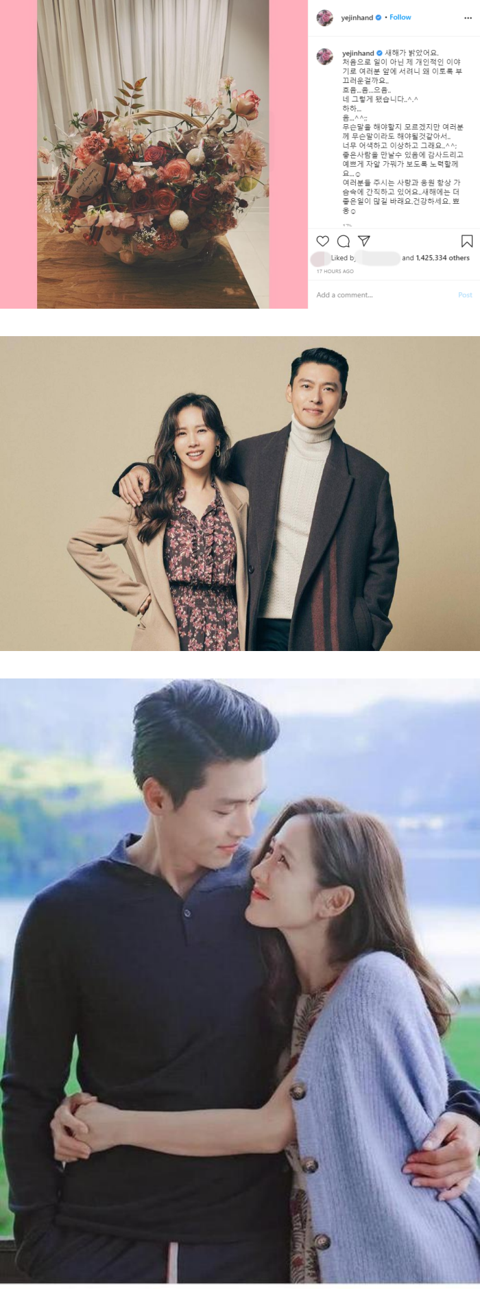 另外,玄彬、孙艺珍在透过经纪公司发声明认爱后,孙艺珍其后也在IG发文,亲自宣布喜讯:“新年到了。第一次不是以工作,而是以我个人的事站在大家面前,为什么这么害羞呢?虽然不知道该说什么,但我觉得应该对大家说些什么。太不自然了,太奇怪了。感谢能遇到这么好的人,我会努力培养感情。大家给予的爱和支持我一直珍藏在心底,希望在新的一年里有很多好事,祝大家身体健康。”