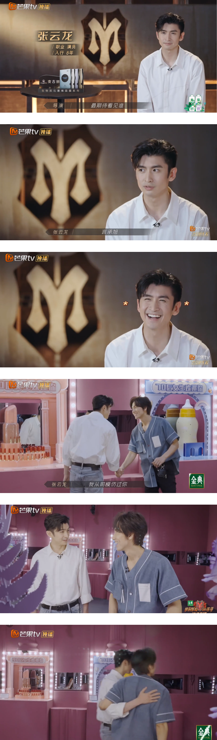 张云龙、言承旭在刚出场时就恰好碰见对方,见到自己偶像的张云龙立刻上前打招呼,并笑说自己以前模仿过对方。他在接受节目组询问“最期待看到谁”时,直接表示:“言承旭”,更笑得乐不可支,直言自己真的很想了解对方。