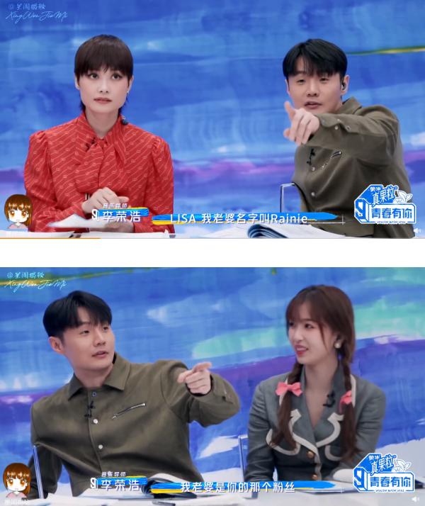 李荣浩认真地说道:“LISA,我老婆的名字叫Rainie,杨丞琳。我老婆是你的粉丝”,让LISA惊讶地露出不可思议的笑容。