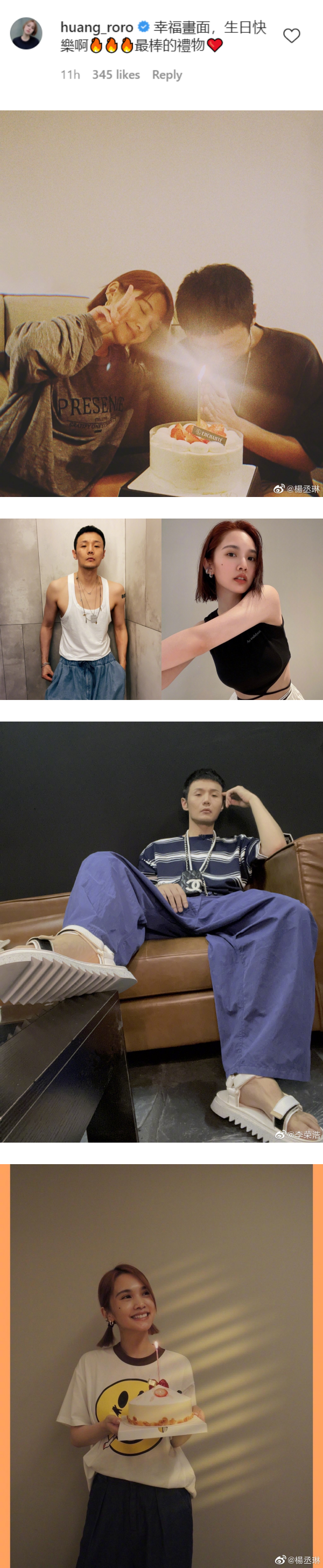 近日,李荣浩迎来36岁生日,原以为杨丞琳还在台湾,怎料12日晚她贴出为老公李荣浩过生日的照片配文,“幸福画面,生日快乐啊 最棒的礼物”,图中看到她小鸟依人地靠在李荣浩肩上比yeah,李荣浩则眯起眼睛在生日蛋糕前许愿。