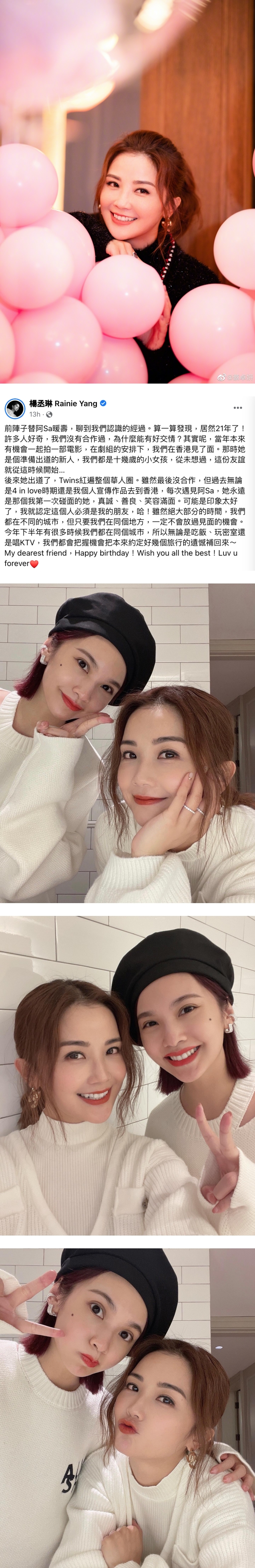 虽然大部分的时间两人都在不同的城市,但两人只要在同个地方,一定不会放过见面的机会,最后也对好闺蜜甜喊:“dearest friend”,为对方献上生日祝福。