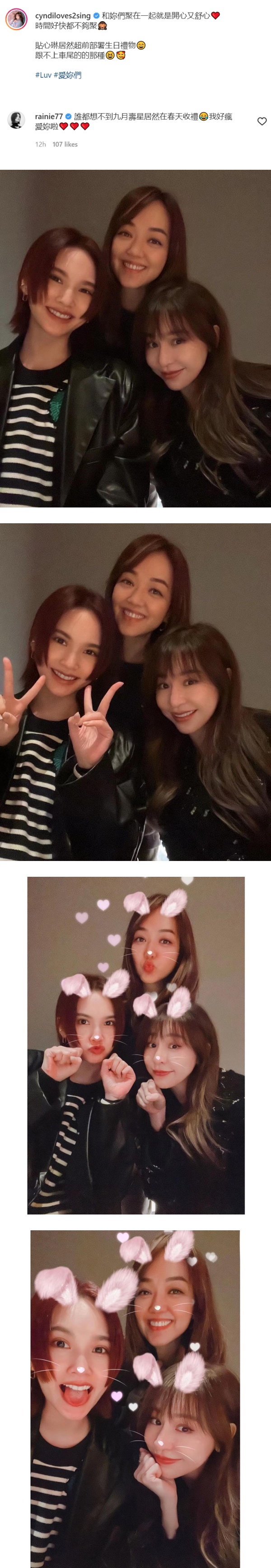 据悉,杨丞琳刚从中国返回台湾,结束了隔离后就和友人聚会;王心凌在IG贴文中写到,“贴心琳居然超部署生日礼物 跟不上车尾的那种”,翻查资料王心凌的生日是在9月5日,距离现在还有大半年的时间,杨丞琳留言回复笑说,“谁都想不到九月寿星居然在春天收礼 我好疯 爱妳啦”。