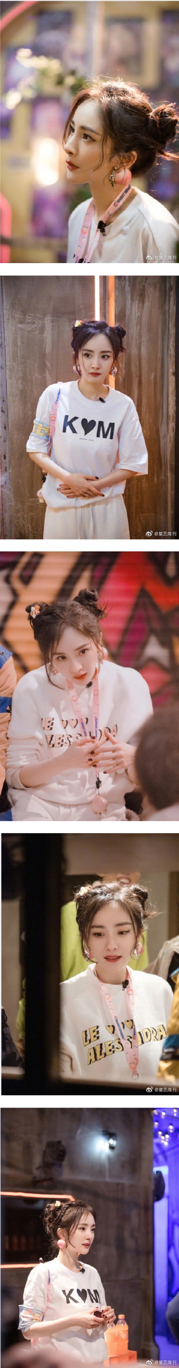 曝光的照片看到,杨幂顶着精致妆容、绑着哪吒头出场,最引人注意的是,杨幂双耳戴了2颗巨型“大桃”耳环,估计她这造型是要配合回节目名称“大逃”吧。