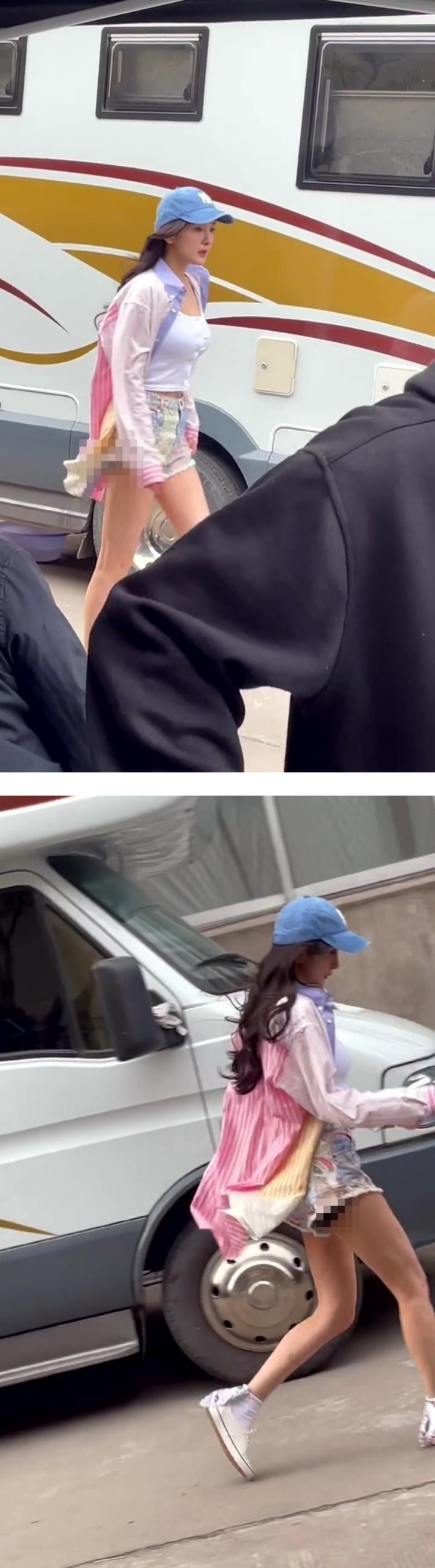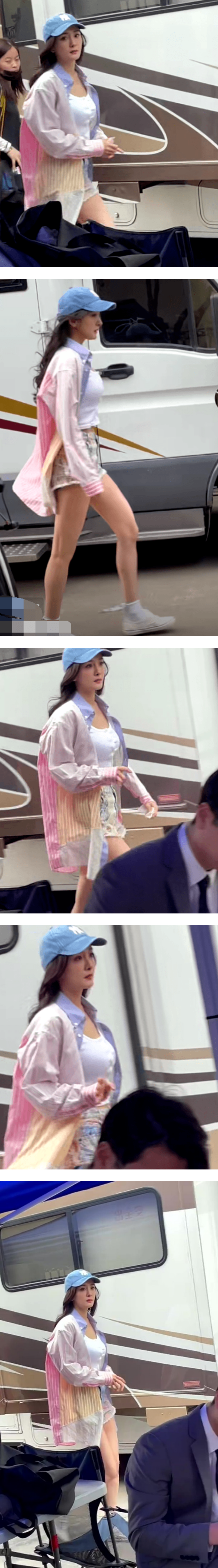 不过,由于杨幂穿着的热裤太短了,她在行走时不小心露出里头的打底裤,一双笔直纤细、白嫩的大长腿也非常引人注目。