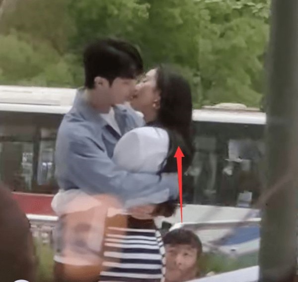 34岁的杨幂和小9岁的许凯两人在新剧中组成CP,虽说年龄上有差距,但两人站在一块的画面依然养眼。从曝光的吻戏路透中看到,杨幂一身OL打扮和许凯在大厦外接吻,两人紧抱在一起,亲的相当投入,瞧身后这位工作人员也看到“眼定定”。