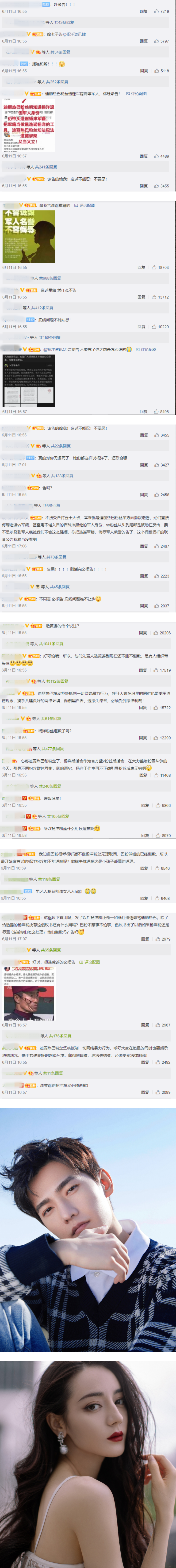 而迪丽热巴的工作室评论区同样也不太平,热评都在喊话:“造黄谣的给个说法?”、“杨洋粉丝道歉了吗?”、“男艺人粉丝别造女艺人h谣”、“这倡议书有用吗,发了以后杨洋粉还是一如既往造谣辱骂迪丽热巴,除了给造谣的杨洋粉挽尊这倡议书还有什么用吗?”