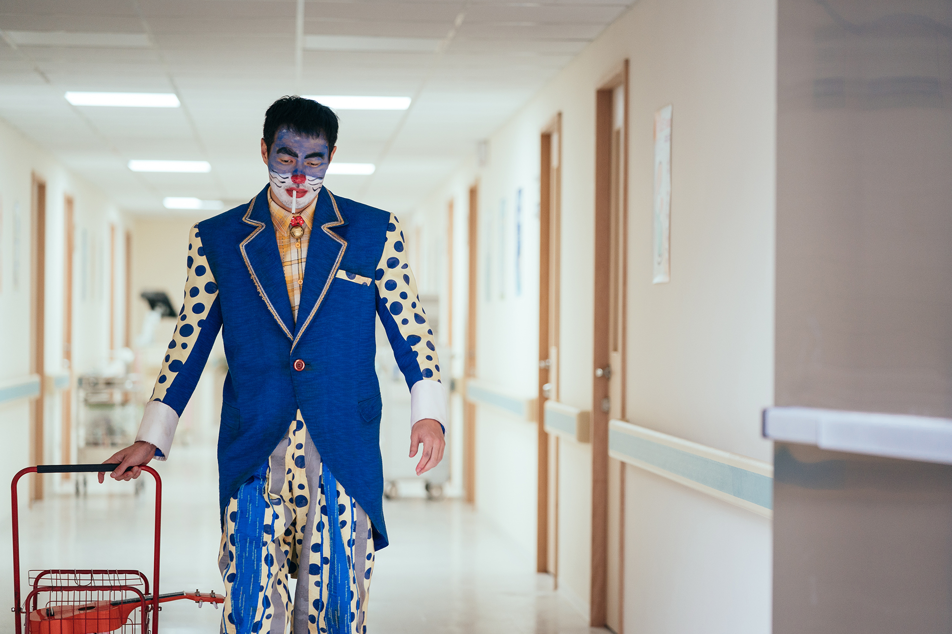 他饰演的“刘长坤”曾因变装秀而风光一时,但后来因秀场没落而负债累累,独自住在狭窄的木板房,被到处追债,只能到医院表演小丑来维生,是一个很苦大仇深、压抑的角色。