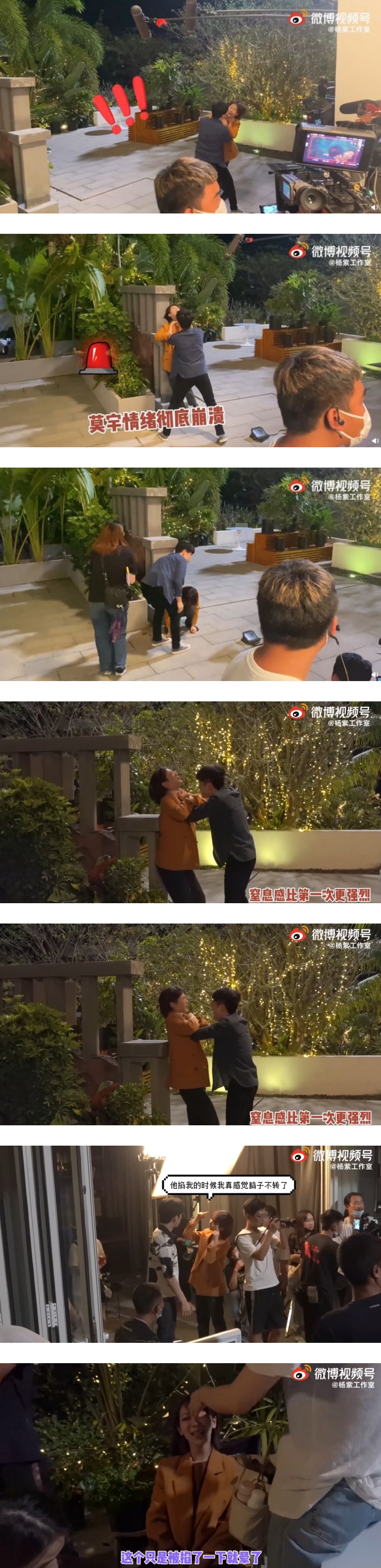 这段剧情中,杨紫被情绪失控的男子掐住脖子用力摇晃、推撞到旁边的墙上,整整10几秒的时间拼命挣扎,直到井柏然饰演的“钱开逸”冲出来之后才获救。