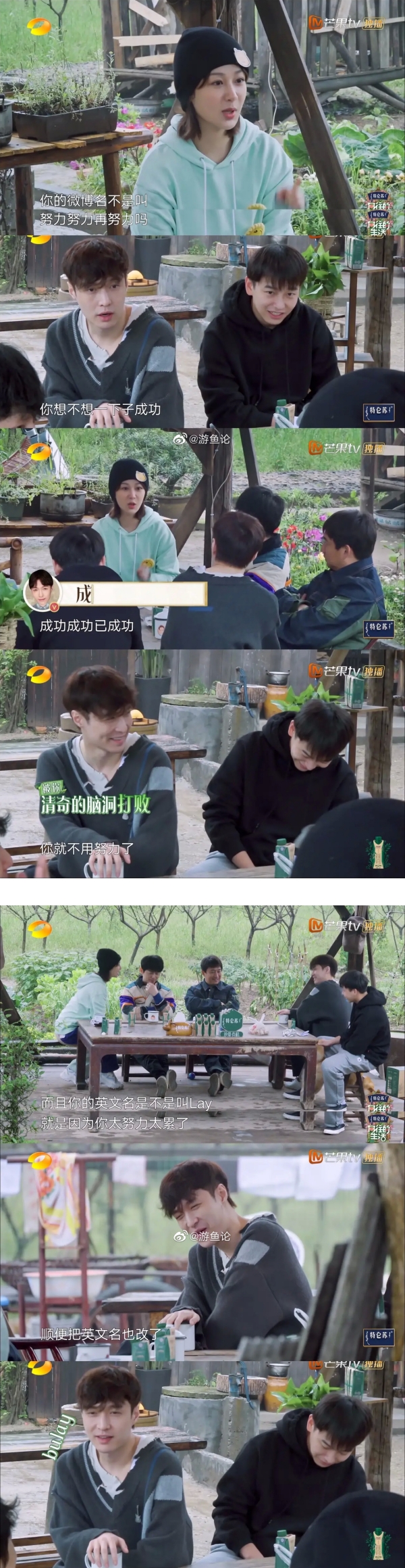 来到最新一集,杨紫见到张艺兴时表示:“你这么努力,你的微博名字不是叫努力努力再努力吗?你想不想一下子成功,那就改名为成功成功已成功。” ,搞笑的嫌弃了张艺兴的微博名称。
