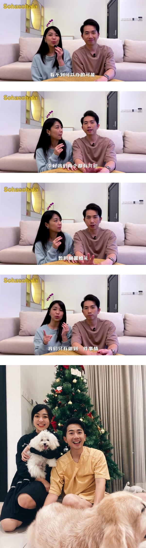 关萃汶提到,原本两人计划在2020年办婚礼,但因为疫情影响一切得延后,“来到2021年了,我们的婚礼好像还是看不到可以办的可能”。叶朝明补充,幸好两人都有共识,暂时搁置婚礼,待疫情过去再开开心心庆祝。