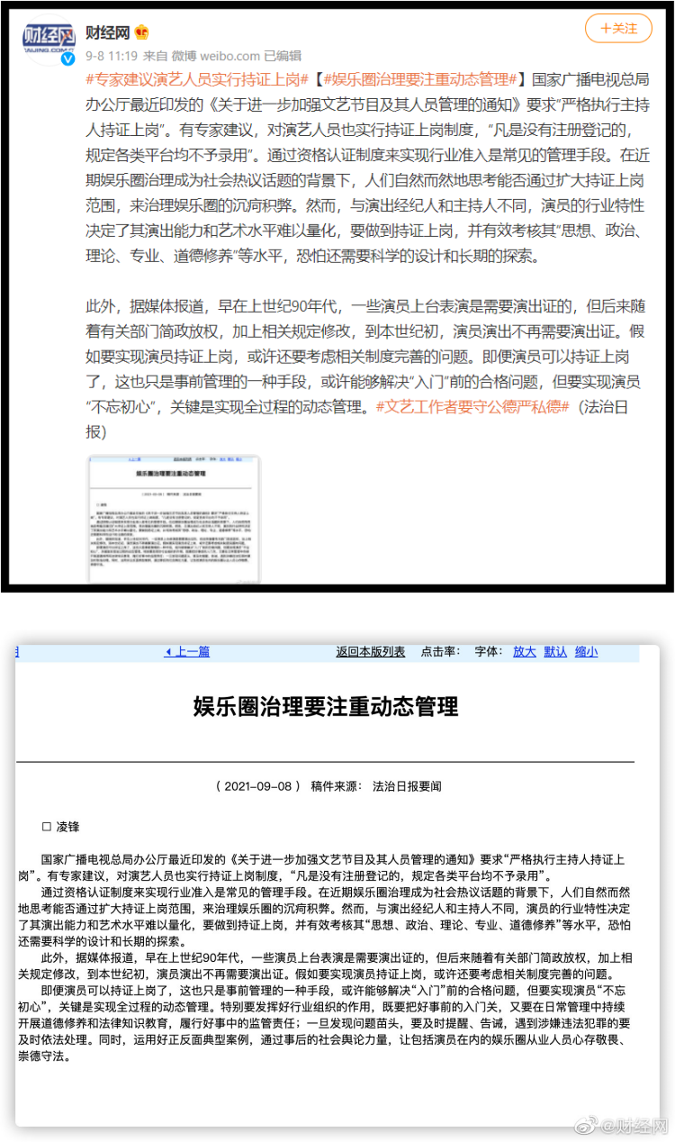 中国官方近期出手整顿演艺圈,祭出了多条禁令来限制艺人、粉丝,没想到事情仍未结束,有专家提出建议,认为艺人需实行持证上岗制度!
