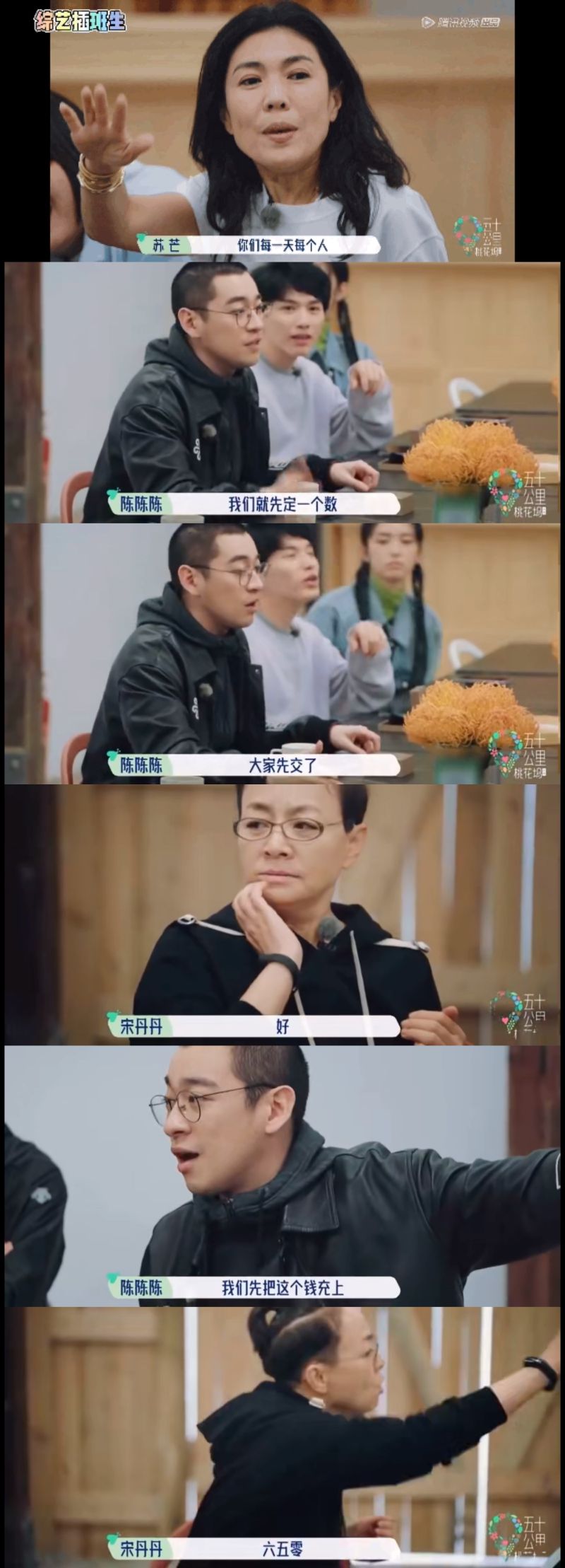 节目中,苏芒表示:“你们每一天每一个人先交伙食费”,宋丹丹随后提议人民币650元,没想到苏芒却激动表示:“不行,650真的不够!你早上不喝牛奶呀?不吃鸡蛋呐?我们要吃好一点,我不能那么差的伙食。”