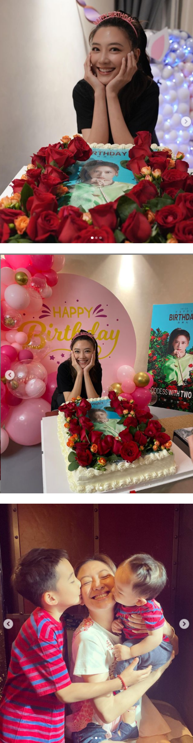 另一张照片中,只见她坐在中间,双手抱着小儿子Hoho,Jasper则站在她的身侧,闭着双眼亲吻妈妈的脸颊,Hoho也抿着嘴巴亲吻,非常萌。不过照片中并没有出现陈小春的身影。