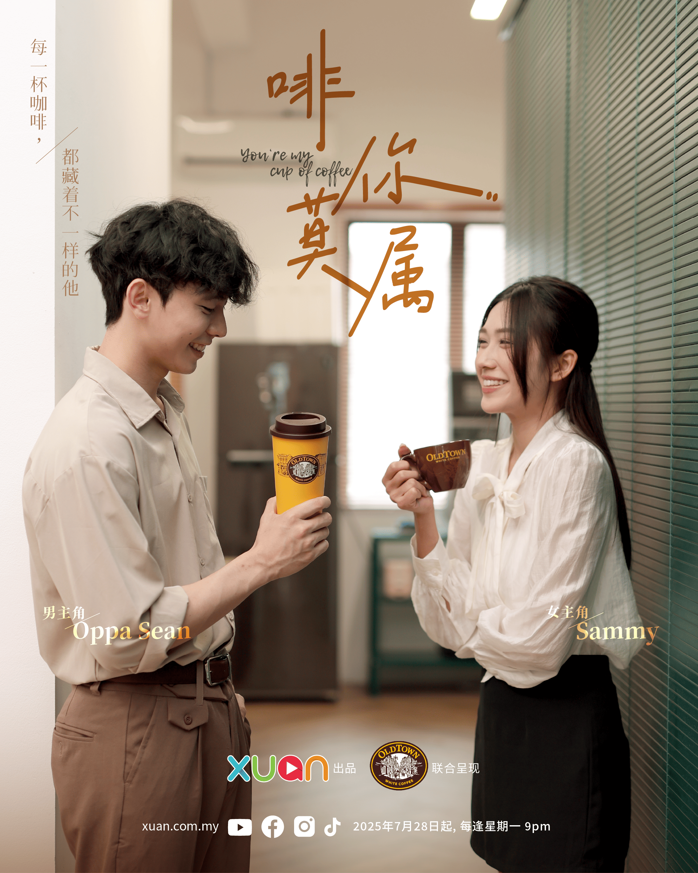 在 OLDTOWN White Coffee 迎来 25 周年之际,XUAN 携手品牌倾情呈献原创迷你剧《啡你莫属 You’re My Cup of Coffee》,以一段感情起伏的爱情故事,致敬白咖啡陪伴我们成长的点点滴滴。