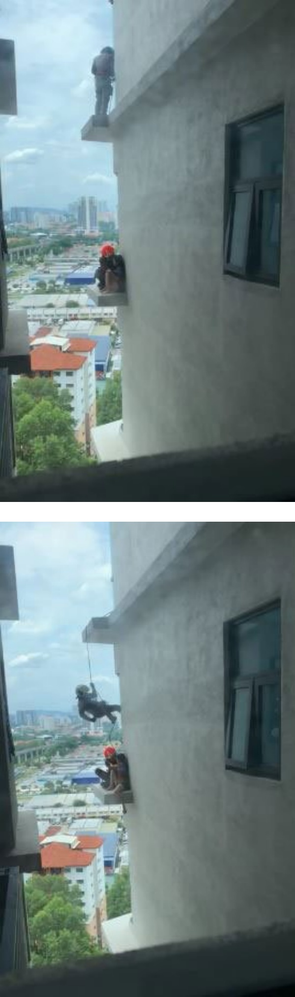 华裔女子危坐在公寓墙外企图自杀, 幸被消拯员劝解放弃自杀念头, 才从鬼门关捡回一命。 这宗惊险万分企图跳楼案是在雪州蒲种再也镇一座5楼公寓处发生。