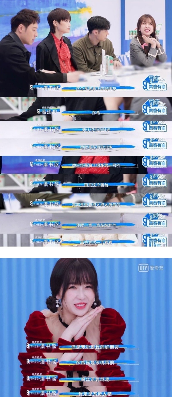 话毕,她马上求生欲上线:“但是我觉得我的好朋友彦希还是很优秀,粉丝不要骂我,我不是不近人情,是因为这里有很多双眼睛盯着我!”除了点评以外,虞书欣也曾帮彦希说好话,包括透露好友其实鼓起了很大勇气才来参赛:“我认识他的时候,他是在海外训练、演了很多男一号。”