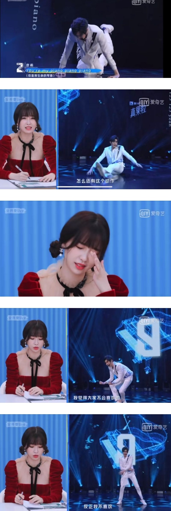彦希以一身白色服装上阵,演绎《Piano》。原本一切都很顺利,不料彦希竟然设计了一段地板动作,让虞书欣立刻尖叫:“怎么还有这个动作?!我说这个能不能把它给去掉,我觉得大家不会喜欢的...反正我不喜欢。”