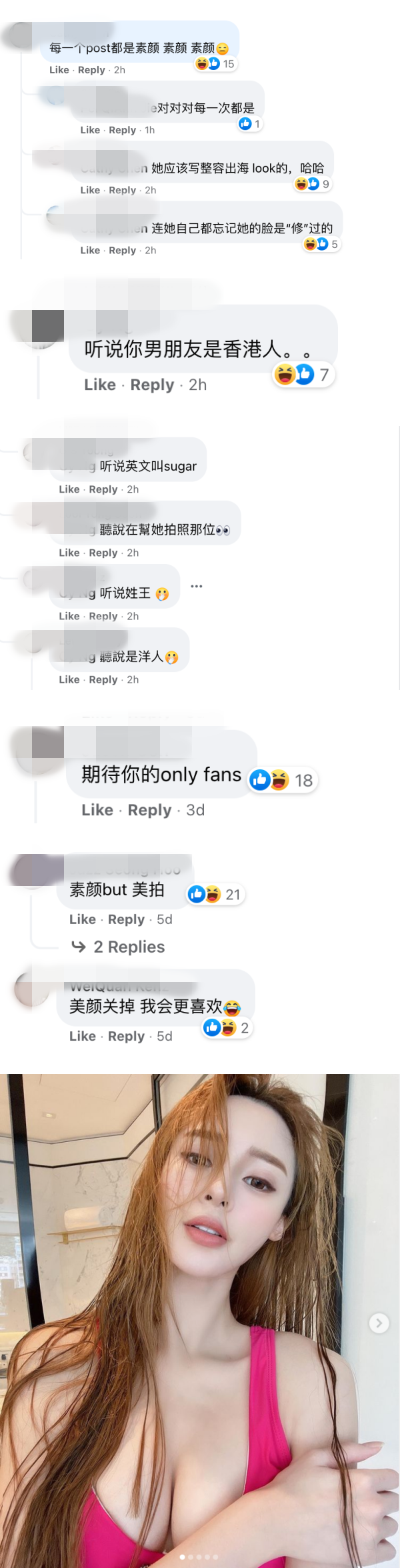 怎料有不少酸民竟然在底下留言:“每一个post都是素颜 素颜 素颜”、“听说你男朋友是香港人”、“听说英文叫sugar”、“素颜but 美拍”、“美颜关掉,我会更喜欢” 等。