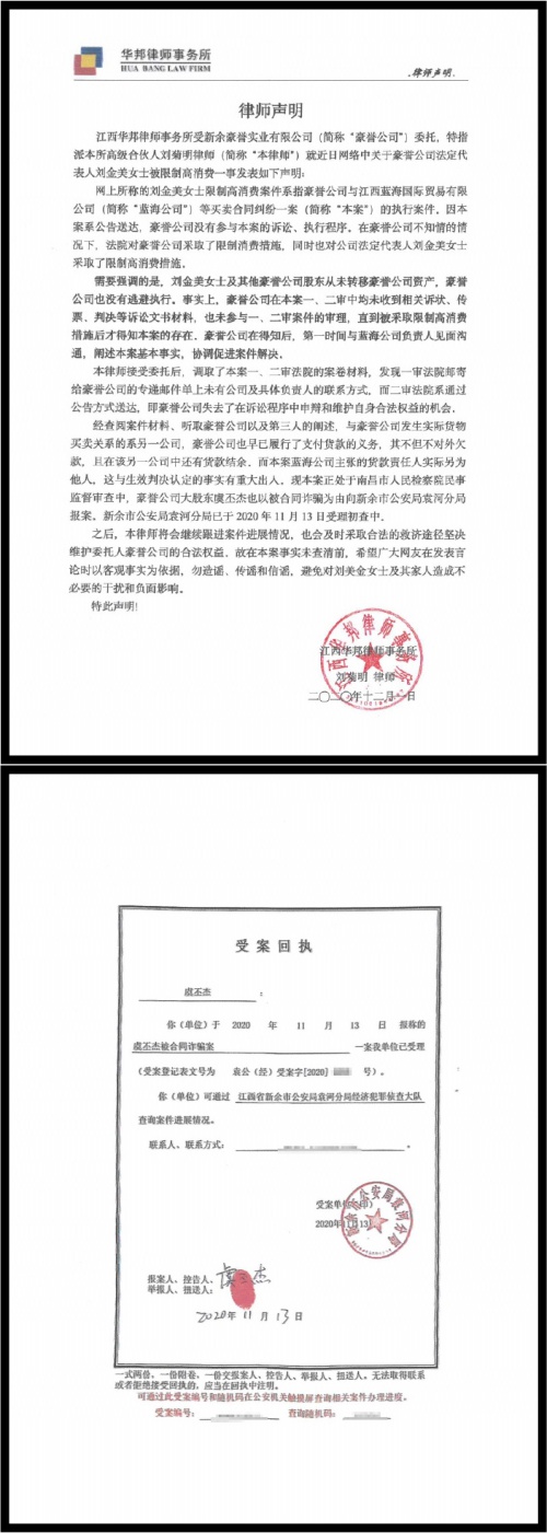 工作室也在贴文中附上律师声明和受案回执,正面且积极地回应。