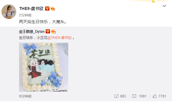 虞书欣其后也转发王鹤棣的发文,写道:“两天后生日快乐,大魔头。”