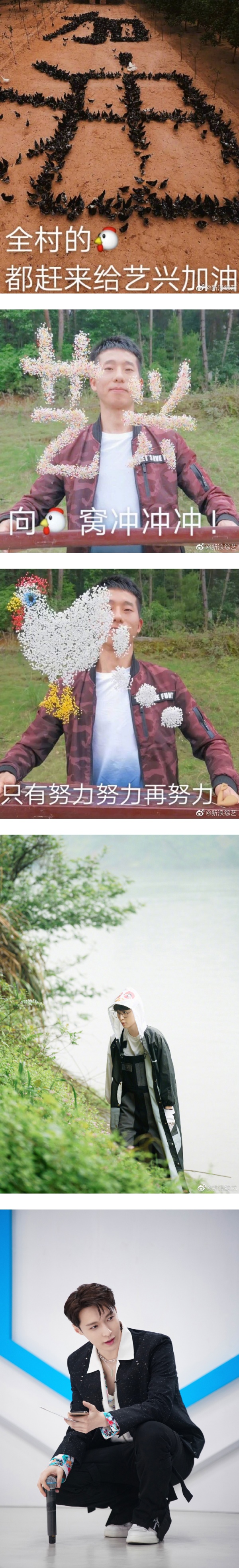 为此,微博上有网友出奇招以鼓励张艺兴捡鸡蛋,其中包括动用上百只鸡拍出“艺兴,加油”的字眼,另外网友也拿着板子在空中抛字列出“艺兴 挑战 不要怕 一窝鸡 全拿下”。