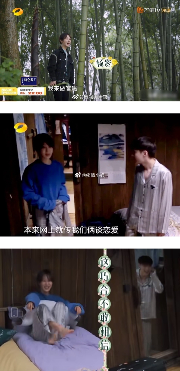 在14日播出的《向往的生活》第5季第4集中,张艺兴的绯闻女友杨紫来啦!早前就有传两人绯闻的她们不只直接在节目中用行动辟谣,两人还撞睡衣,确实把粉丝们都逗乐了。