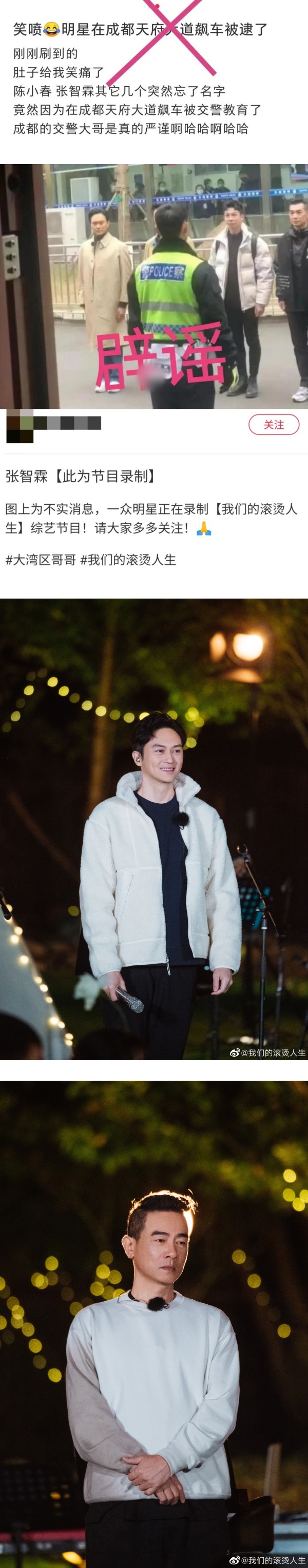 13日,网上流传一张陈小春、张智霖站在一起被交通警察训话的照片,随后其他网友赶紧帮忙辟谣还原真相。