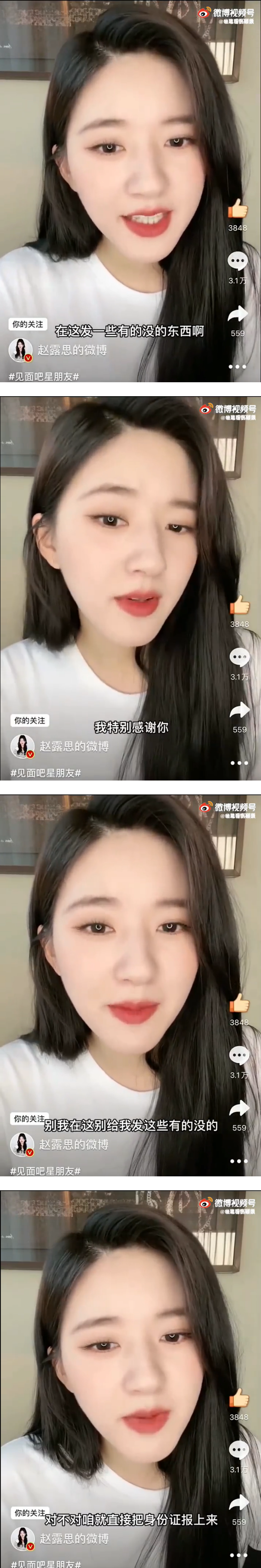 赵露思的霸气行为让不少粉丝大赞:“怼得好”、“怼黑也这么克制体面我真的爱了,女王行为”、“美女怼黑子都这么赏心悦目”。