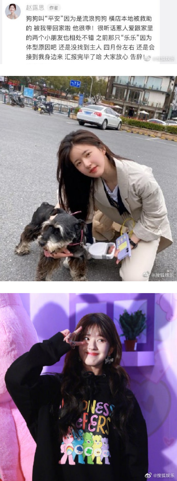 据悉,赵露思早前也曾领养了一只叫“平安”的流浪狗:“横店本地被救助的,被我带回家啦,他很乖!”同时也向粉丝们汇报另一只流浪狗的情况,“四月份左右,还是会接到我身边来;大家放心!”