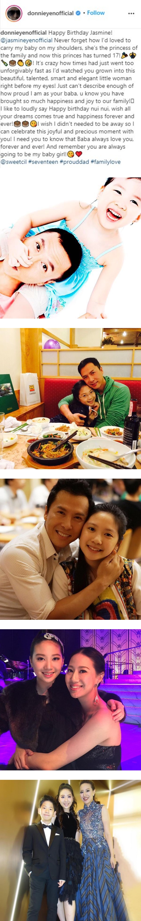甄子丹在女儿Jasmine 17岁生日这天,于Instagram上贴出多张女儿的照片,他感慨地说,当初女儿还是个小宝宝时在自己的怀里哭,转眼间她要17岁了。甄子丹为女儿送上祝福的同时,不忘告白女儿说无论未来怎样,他永远都会那么爱女儿。