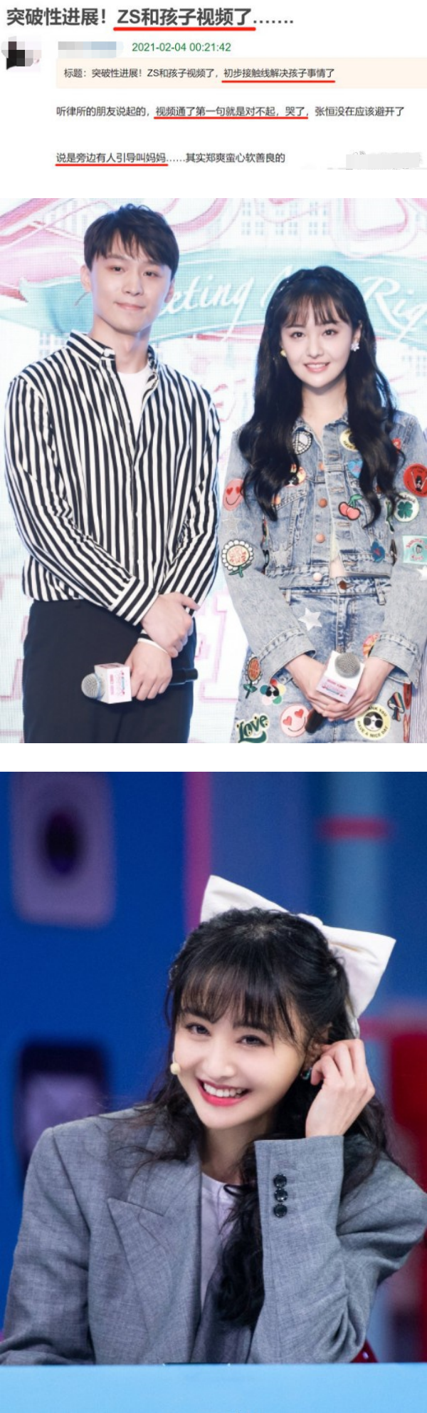 艺人郑爽日前被曝和前男友张恒在美国找代孕,但因为两人分手后弃养的负面新闻。近日,网上有消息流传出指,郑爽和身在美国的子女视讯,见面时第一句话就向子女说对不起,同时不断痛哭。