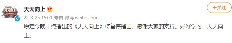 原定昨天(24日)播出的《大侦探》率先宣布暂停播出,而周末向来都是综艺节目播出的高峰期,包括《王牌对王牌》、《天赐的声音》、《天天向上》、《我们的滚烫人生》、《朋友请挺好》、《冰雪正当燃》、《最强大脑》等数10档节目都陆续发声明,宣布这个星期的节目暂停播出。