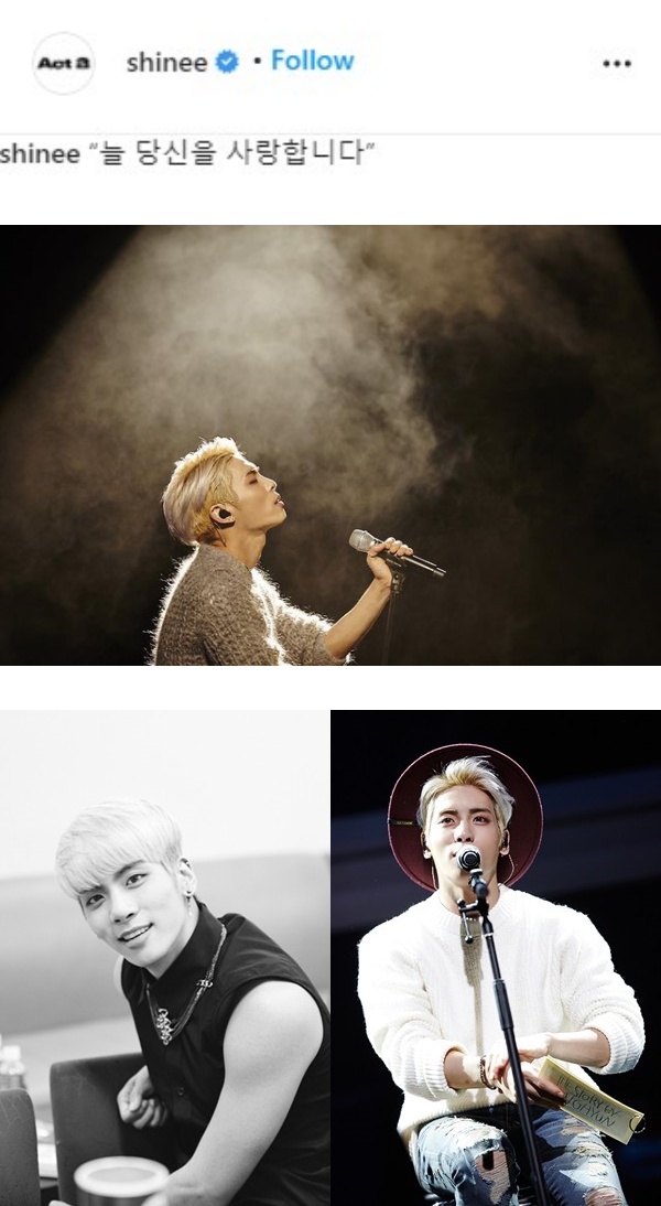 18日零点一到,SHINee官方Instagram贴出了一张钟铉在舞台上握着麦克风的照片配文,“永远爱你”。粉丝们也留言,“哥哥我很想你”、“你要永远这么开心”、“晚安啊钟铉,照顾好自己”等。