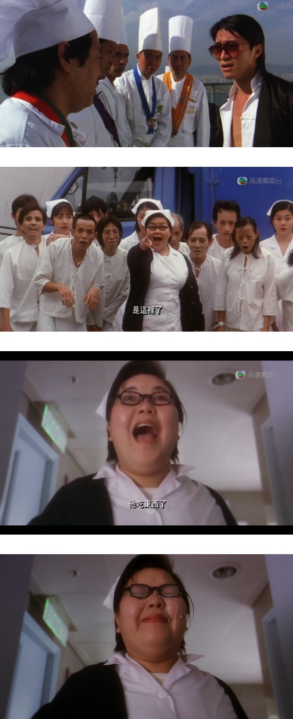 还记得《食神》里的胖妞护士,她凭戏里的对白“佢食嘢啦”,还有吃爆浆濑尿牛丸被喷到满脸,堪称是电影的经典画面。