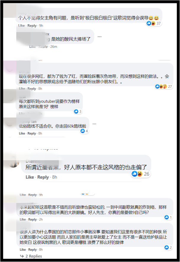 -起初听这首歌是不错而且听旋律也蛮轻松的, 一到中间副歌就真的炸到咯,那样的歌词都可以写得出来真的大跌眼镜。