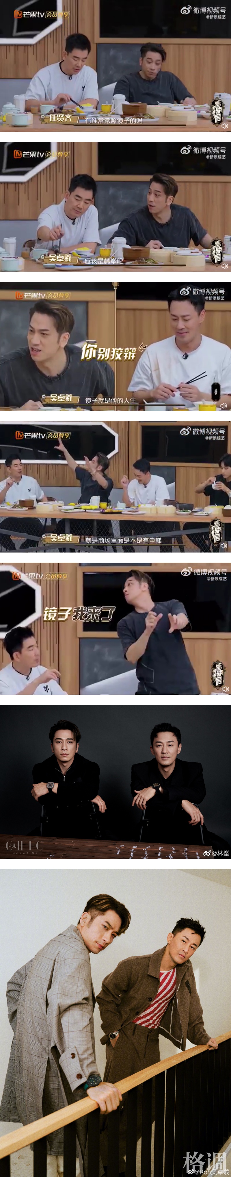 吴卓羲听了之后秒回,“应该是林峯吧!我很熟他,我知道,镜子就是他的人生”,一旁的林峯赶紧解释,“还好吧”,吴卓羲开始模仿林峯照镜子的模样笑说,“爱美是好的,在商场里经过电梯时,看到有一点镜子,他都照的那种”,众人都被他逗笑。