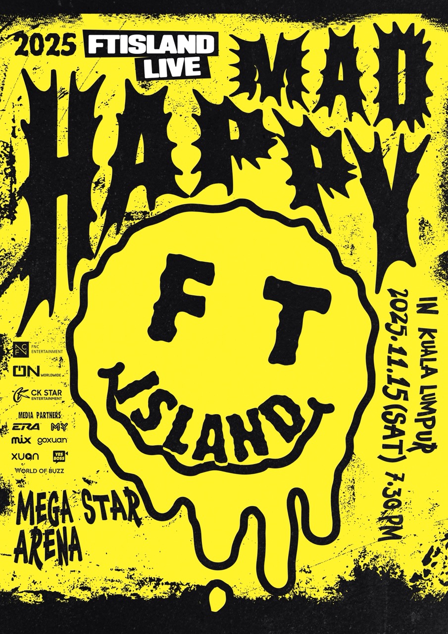 由CK STAR ENTERTAINMENT MALAYSIA主办、XUAN为媒体伙伴,韩国传奇摇滚天团 FTISLAND 即将强势回归马来西亚!他们将于 2025 年 11 月 15 日(星期六) 把全新巡演《2025 FTISLAND LIVE 'MAD HAPPY' IN KUALA LUMPUR》带到吉隆坡 Mega Star Arena,掀起又一波韩流摇滚热潮!
