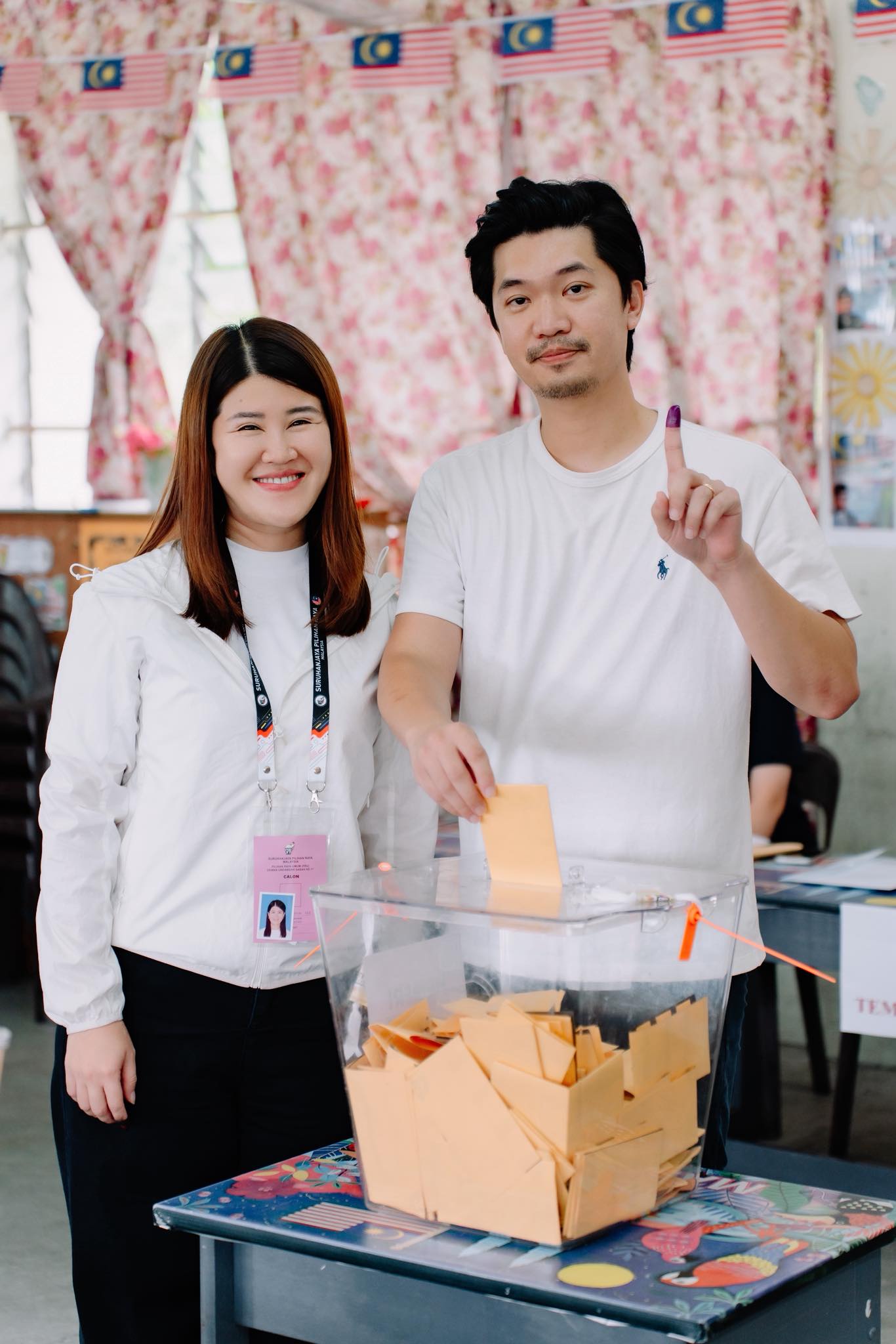 也是山打根国会议员的她,随即从亲善中学步行前往亲善小学,并于10:35 AM抵达亲善小学。在工作人员确认其投票资格后,随即进入指定教室履行公民责任,最终于10:41 AM顺利完成投票,投下神圣一票。