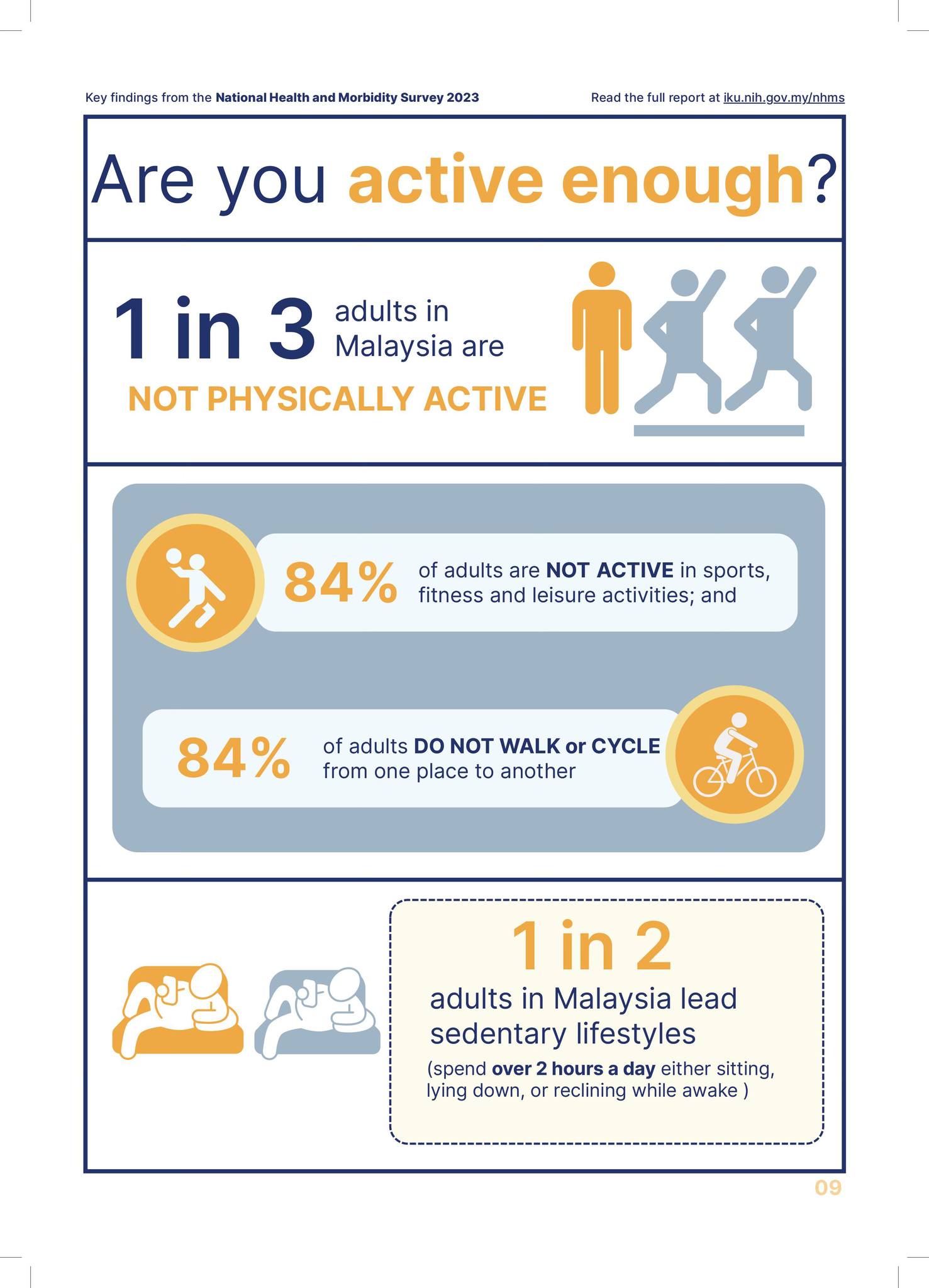 “(至少)29.9% 的大马成年人都缺乏身体活动。 相比起 2006 年(43.7%),这个趋势已经有所下降。”