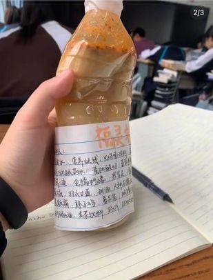 不少学生会在网络上发影片,记录“臭水”的颜色、状态变化,分享自己的“臭水独家秘方”。有的同学也会细心地将“臭水”的配料表贴在瓶身上。
