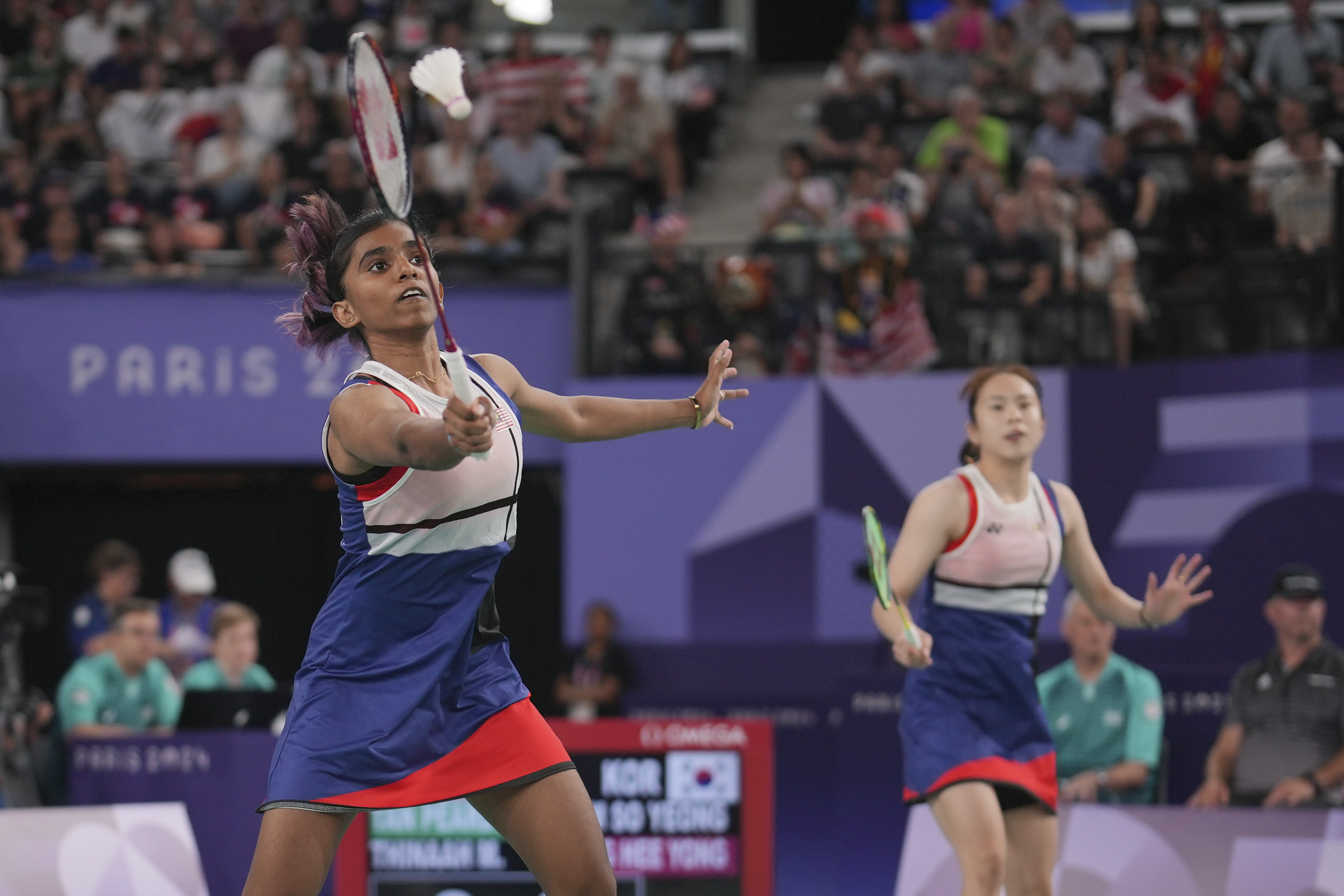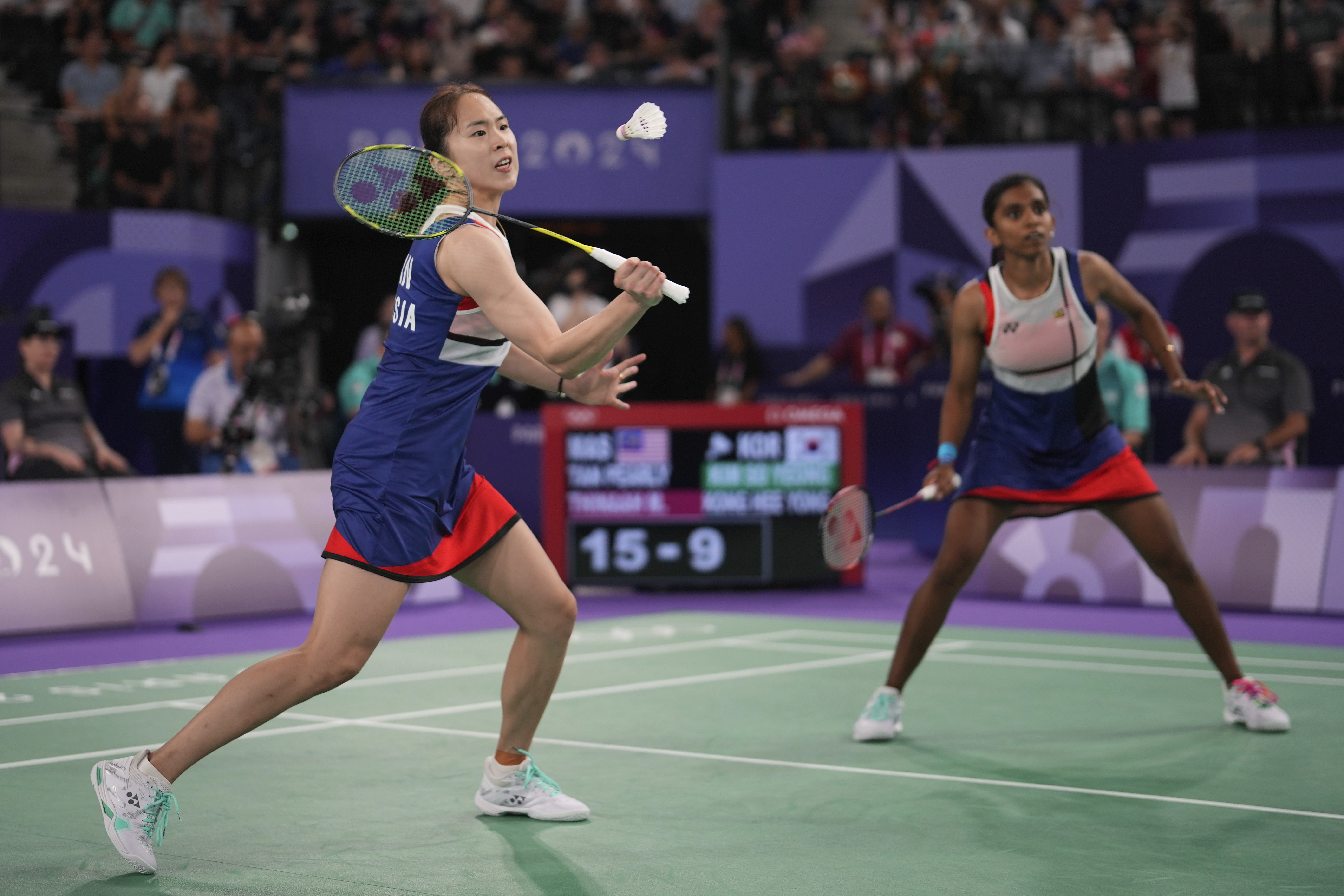 上演奥运首秀的大马女双陈康乐和蒂娜,今天以21比12、21比13的成绩,战胜世界排名第10的韩国组合金昭映与孔熙容。