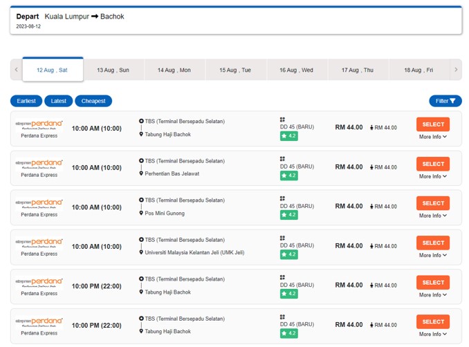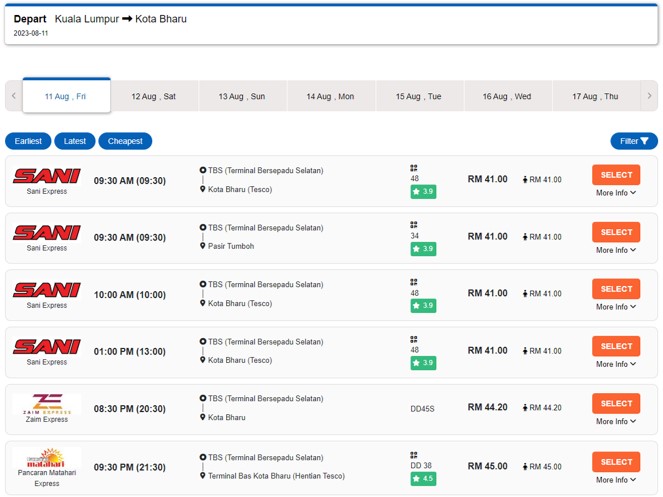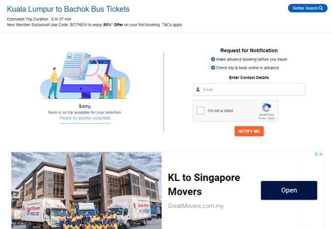 不过,从吉隆坡、返回万捷(Bachok)的车票却无法购买,须等到隔天8月12日才有车票出售。