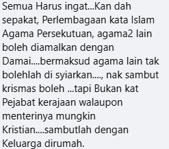 同时,也有网民认为,每逢圣诞节,伊党总会以这项课题来炒作,试图破坏国家和谐。