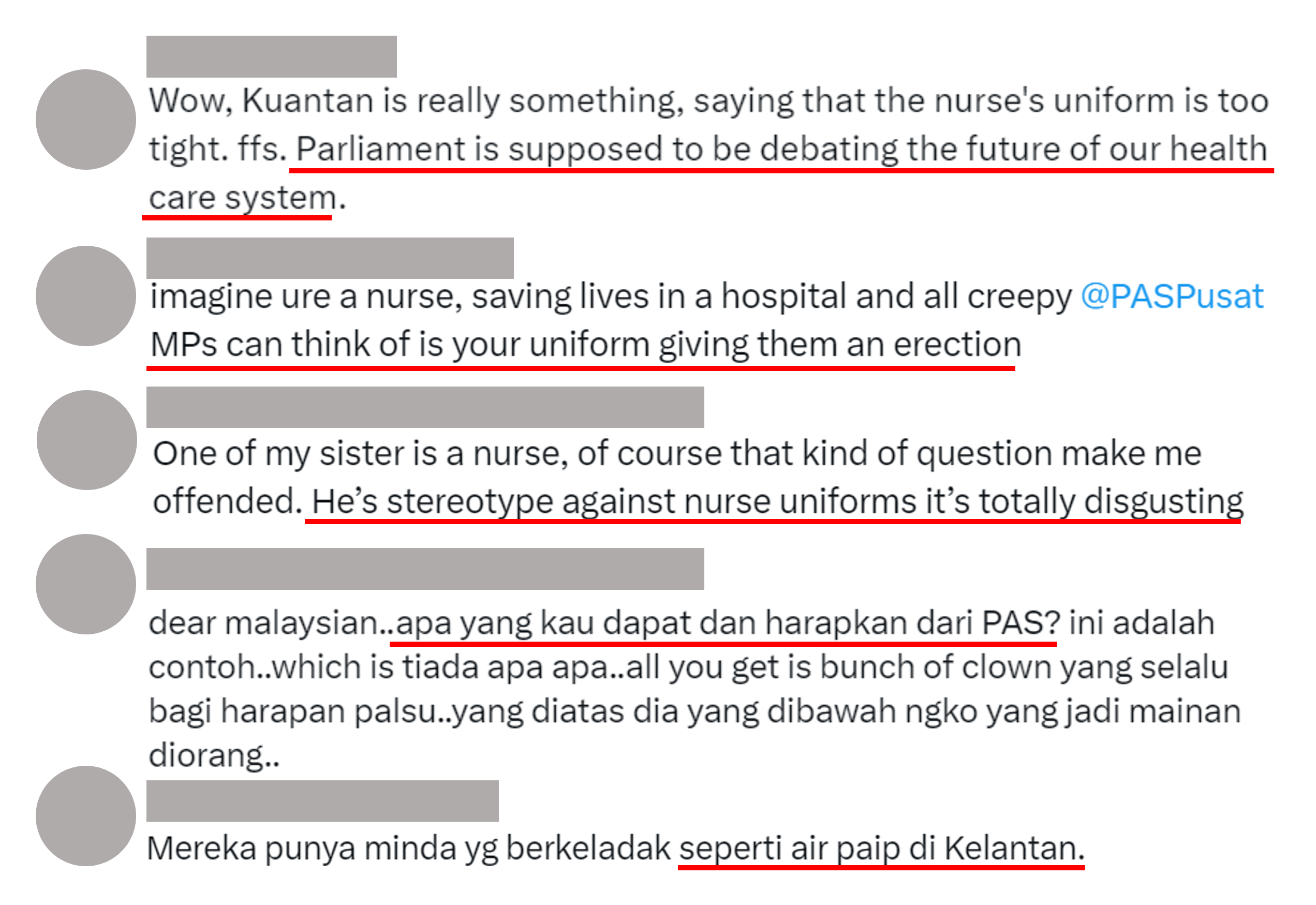 During the Health White Paper debate in DR today, I did not expect the perceived tightness of nurses' uniforms & the imagined shape of their bodies to be brought up by the MP for Kuantan. Temerloh later supported.