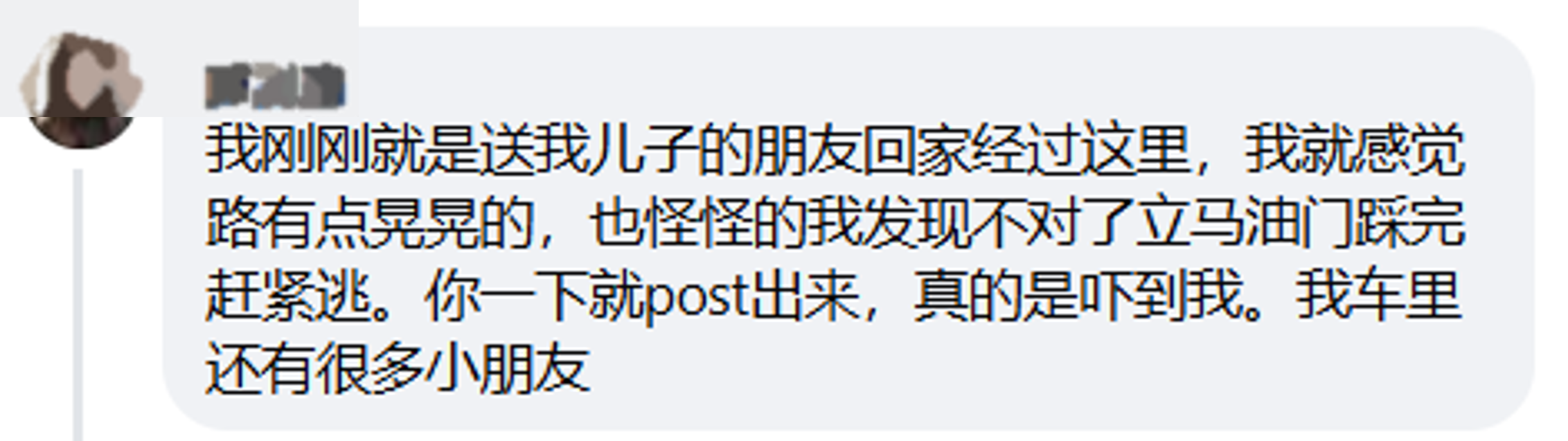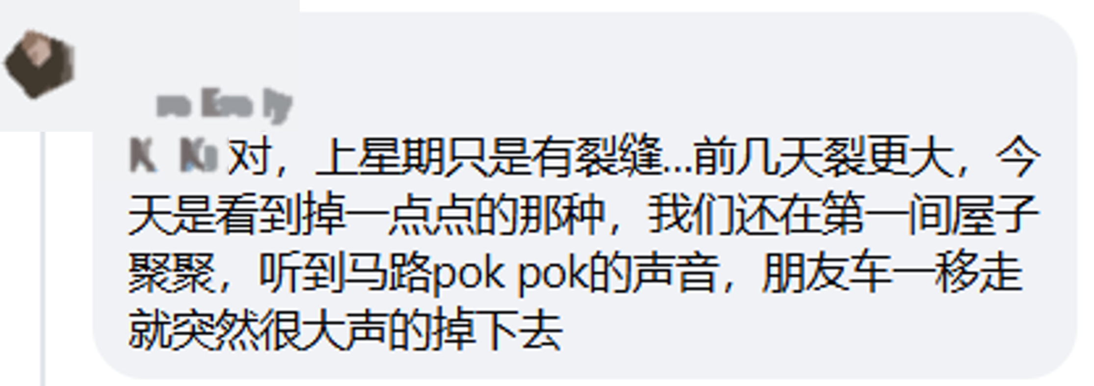 “当时听到马路pok pok的声音,朋友的车一移走,(路面)就突然很大声的掉下去。”